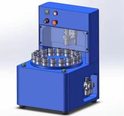 Αυτή η συσκευή είναι κυρίως κατάλληλη για μια μικρή μηχανή συσκευασίας μπαταριών κουμπιών 16 σταθμών. Η μηχανή συσκευασίας χρησιμοποιεί έναν διαχωριστή έκκεντρου για να περιστρέψει το κάτω καλούπι και έναν κύλινδρο για να κινήσει το πάνω καλούπι για συσκευασία. Μπορεί να συσκευάσει μπαταρίες κουμπιών όπως CR2016, CR2025, CR2032 κ.λπ. Μπορεί να τοποθετηθεί σε ένα κουτί γαντιών και να λειτουργήσει σε περιβάλλον αερίου Ar. Η συσκευή διαθέτει ρύθμιση πίεσης συσκευασίας και λειτουργίες εμφάνισης και έχει οριστεί σταθερή πίεση συσκευασίας για κάθε συσκευασία για να διασφαλιστεί η συνέπεια στο πείραμα